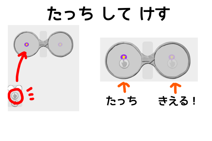 Viscuitでは、オブジェクトをタッチすると消える仕組みを簡単に作ることができます。この機能とカウントダウンタイマーを組み合わせることで、一気にゲーム性が高まります。